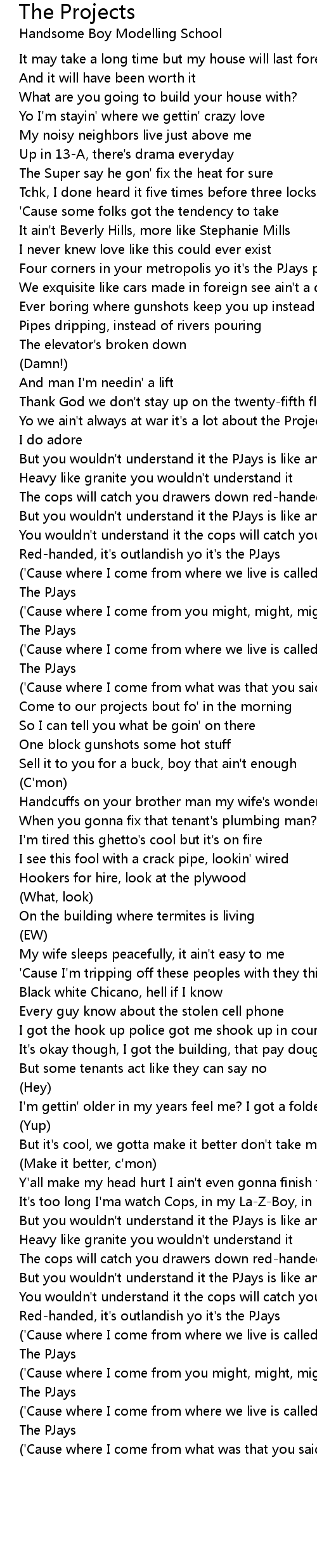 ('Cause where I come from where we live is called the Projects) |