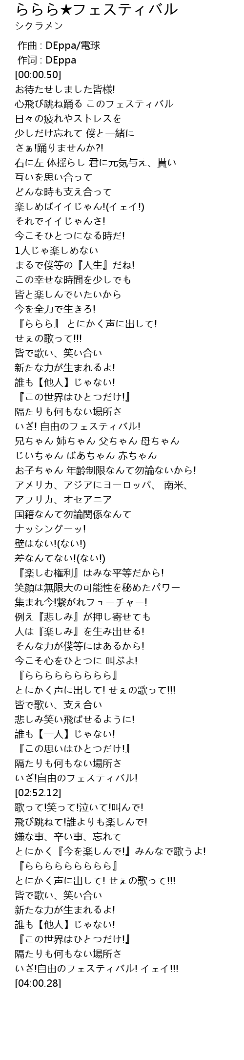 | [03:56.49] | いざ!自由のフェスティバル! イェイ!!! |