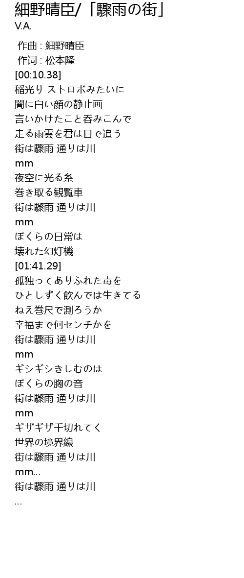 | [00:40.13] | 走る雨雲を君は目で追う |