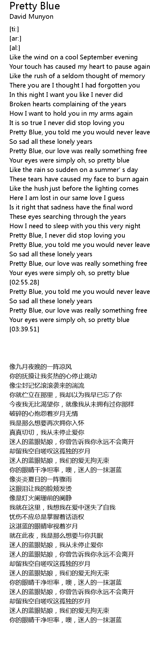 Pretty Blue, I never did stop loving you |