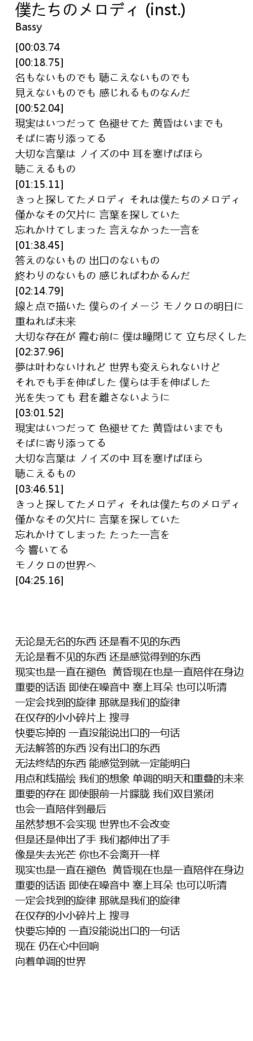 | [03:47.31] | きっと探してたメロディ それは僕たちのメロディ |