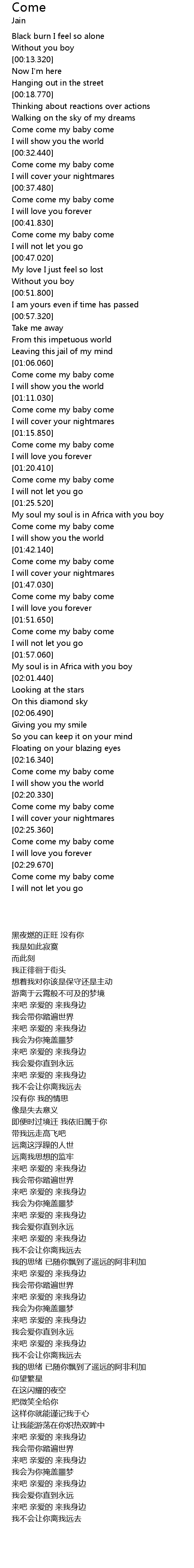 | [01:38.750] | Come come my baby come |