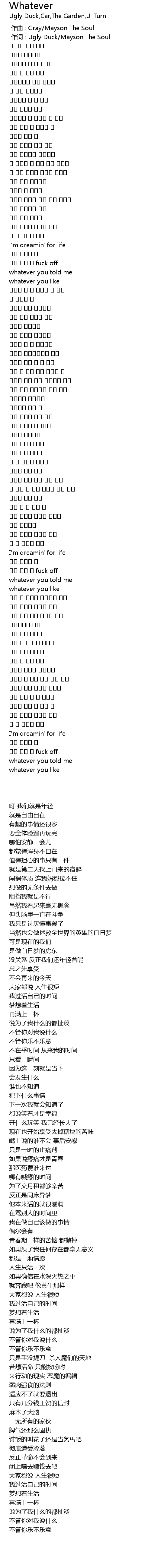 | [00:00.680] | 作词 : Ugly Duck/Mayson The Soul |