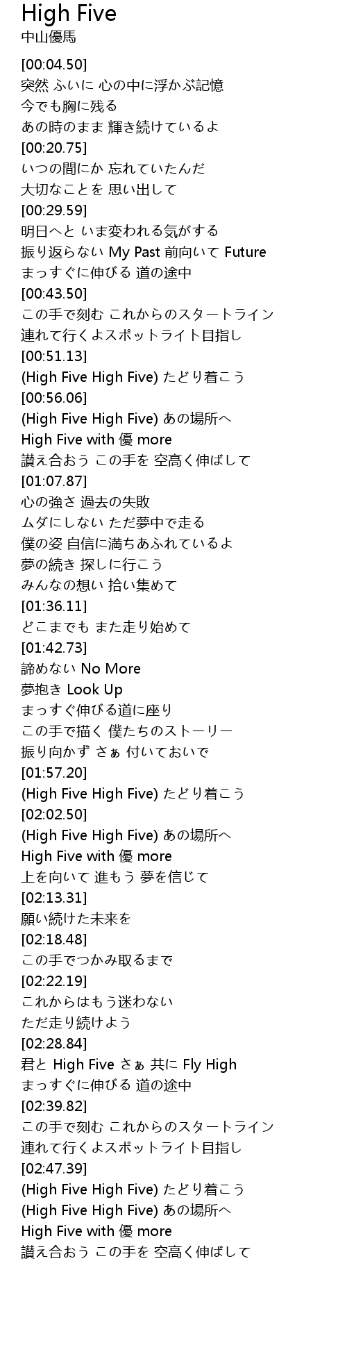 | [01:58.14] | (High Five High Five) たどり着こう |