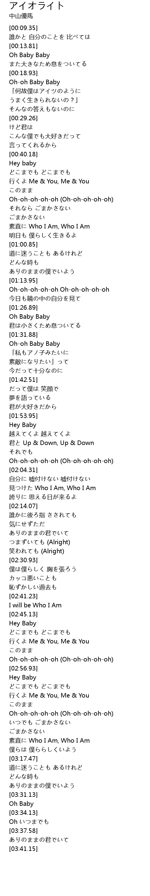 | [03:11.49] | 素直に Who I Am, Who I Am |