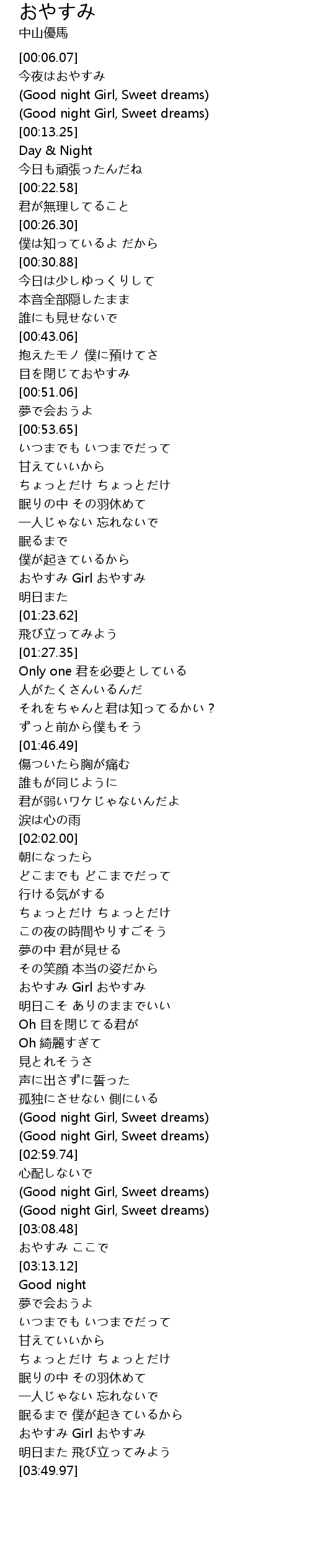 | [03:06.47] | Good night Girl, Sweet dreams |