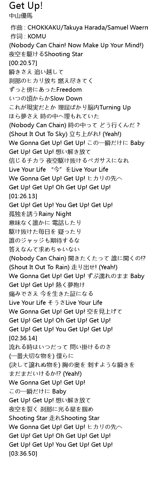 | [03:33.47] | Get Up! Get Up! You Get Up! Get Up! |