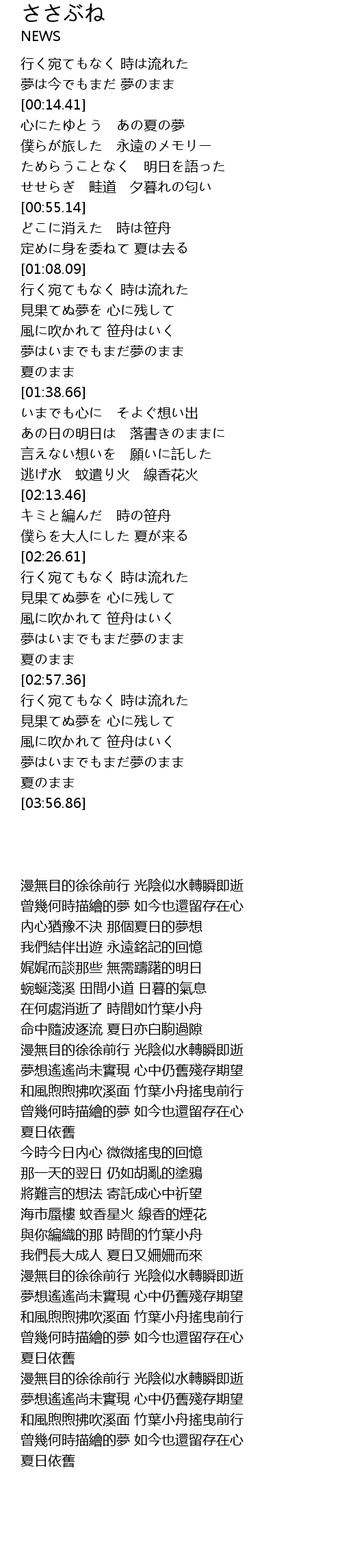 | [00:55.58] | どこに消えた 時は笹舟 |