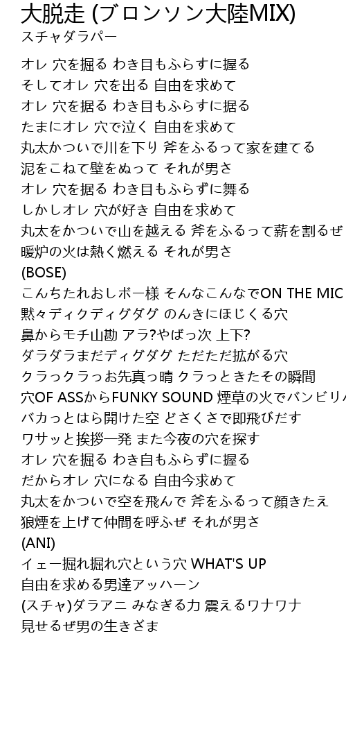 | Song | 大脱走 (ブロンソン大陸MIX) |