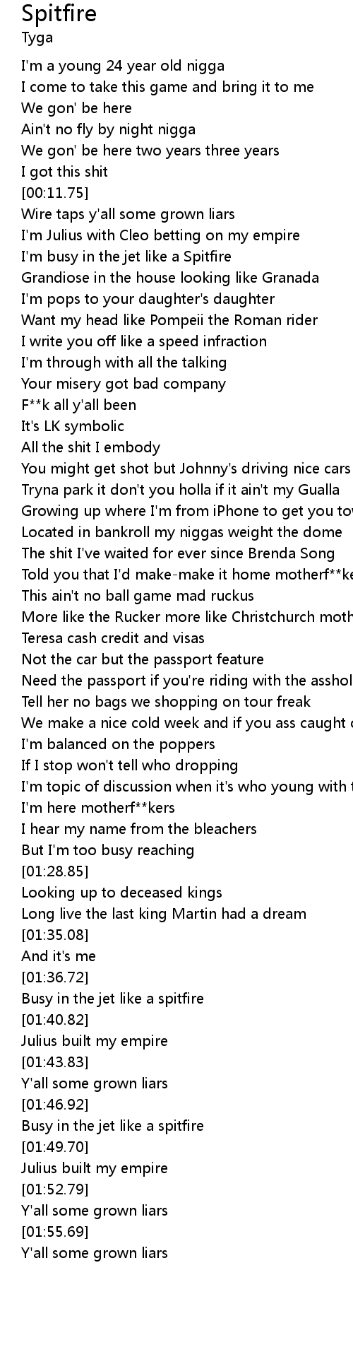 I'm busy in the jet like a Spitfire |