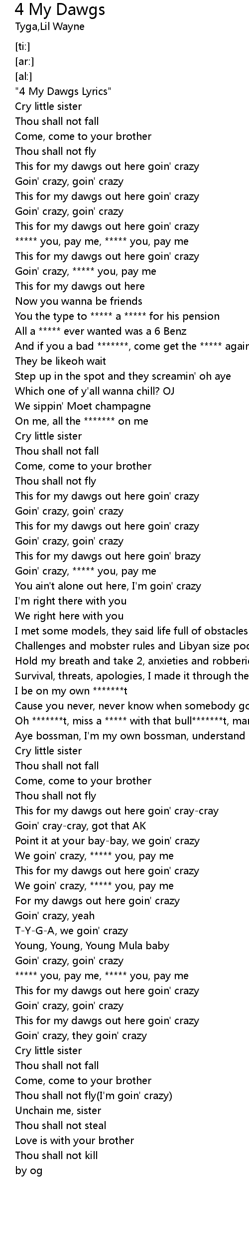 | [00:00.39] | "4 My Dawgs Lyrics" |