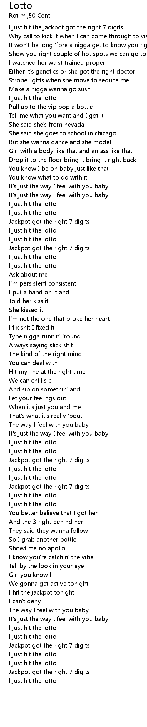 | [00:10.25] | I just hit the jackpot got the right 7 digits |
