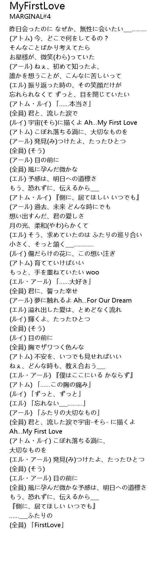 | [01:54.83] | (ルイ) 宇宙(そら)に描くよ Ah…My First Love |
