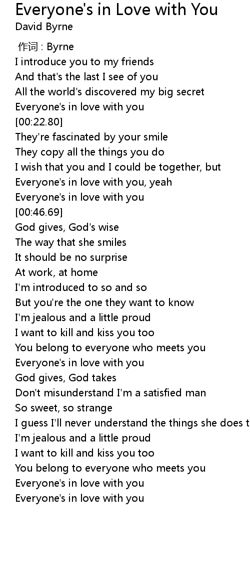 | [00:38.39] | Everyone' s in love with you, yeah |