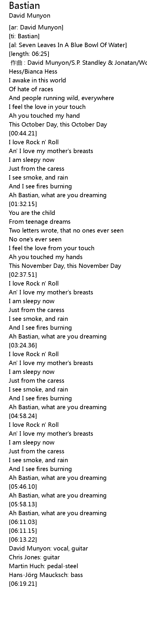| [04:50.74] | Ah Bastian, what are you dreaming |