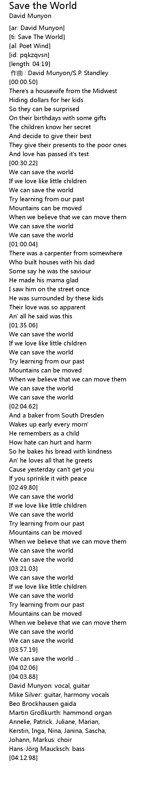 | [00:00.00] | zuò qǔ : David Munyon S. P. Standley |