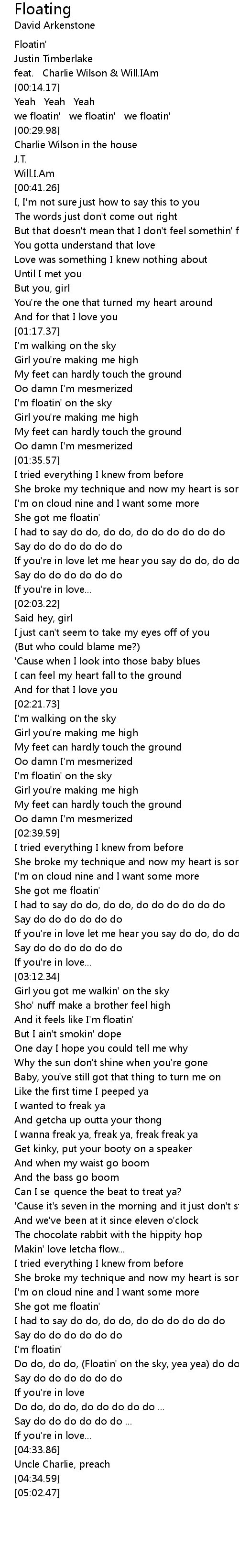 And it feels like I'm floatin' |