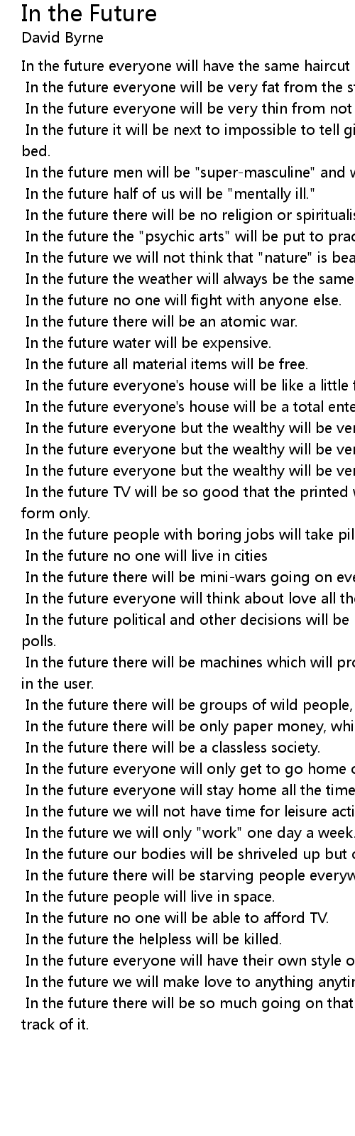 In the future there will be so much going on that no one will be able to keep track of it. |