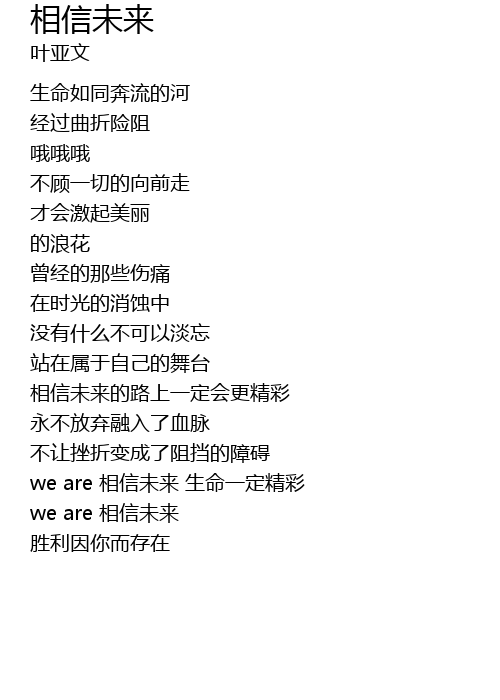 | we are xiang xin wei lai sheng ming yi ding jing cai | |