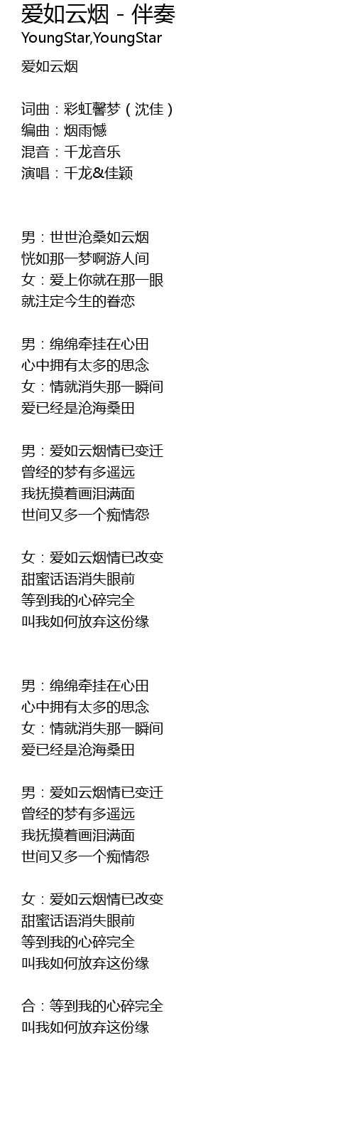 | nán: ài rú yún yān qíng yǐ biàn qiān | |