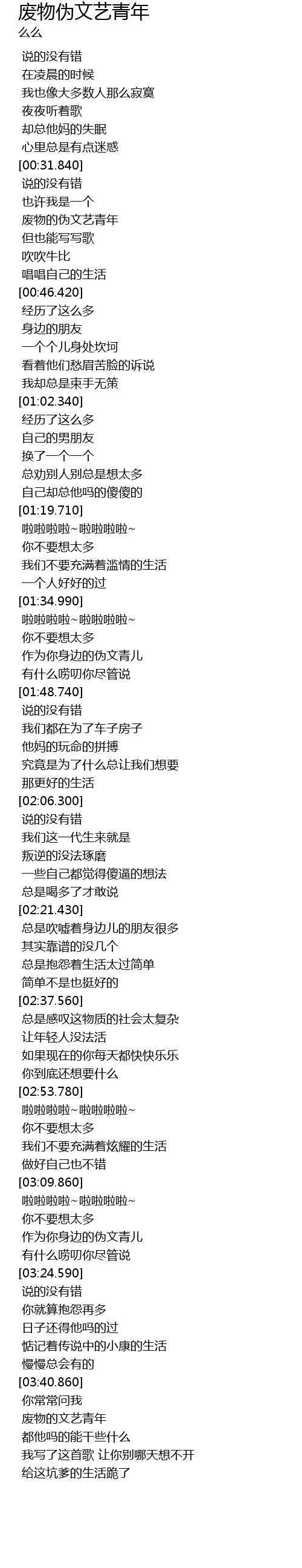 | [03:44.940] | fèi wù de wén yì qīng nián |