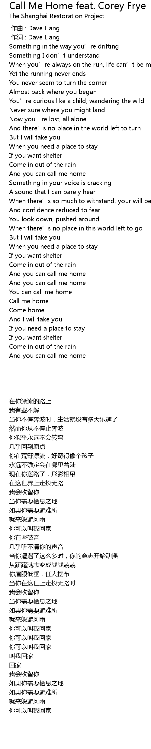 | [02:41.73] | Call me home |