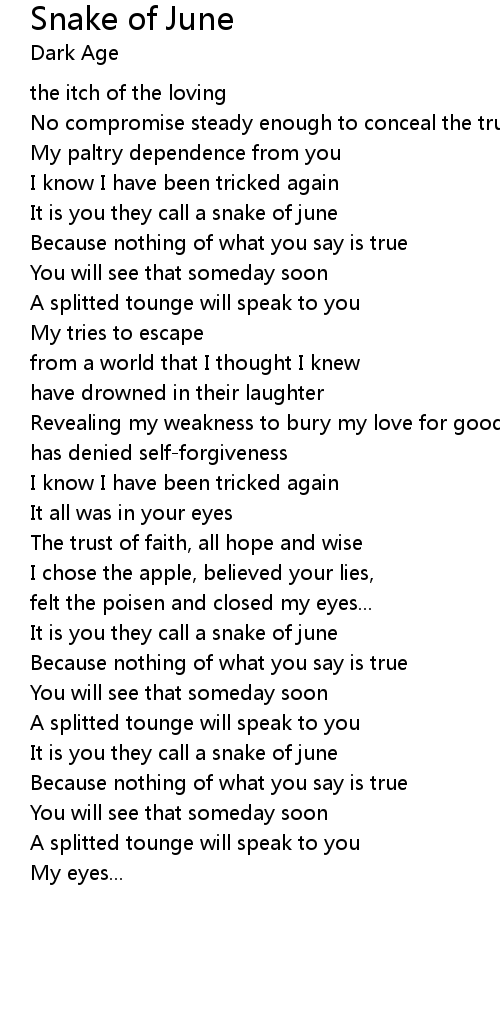 | It is you they call a snake of june | |