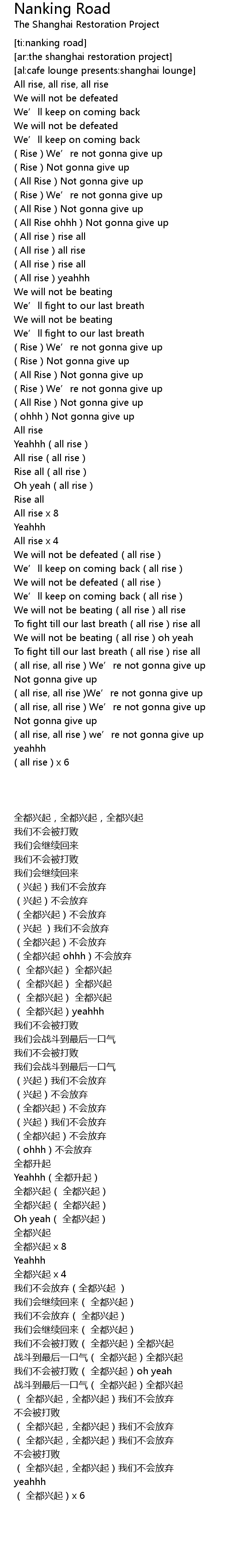 | [02:55.26] | We will not be beating all rise oh yeah |