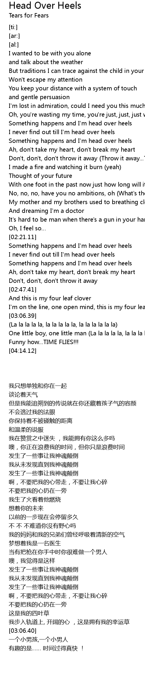 | [02:21.12] | Something happens and I' m head over heels |