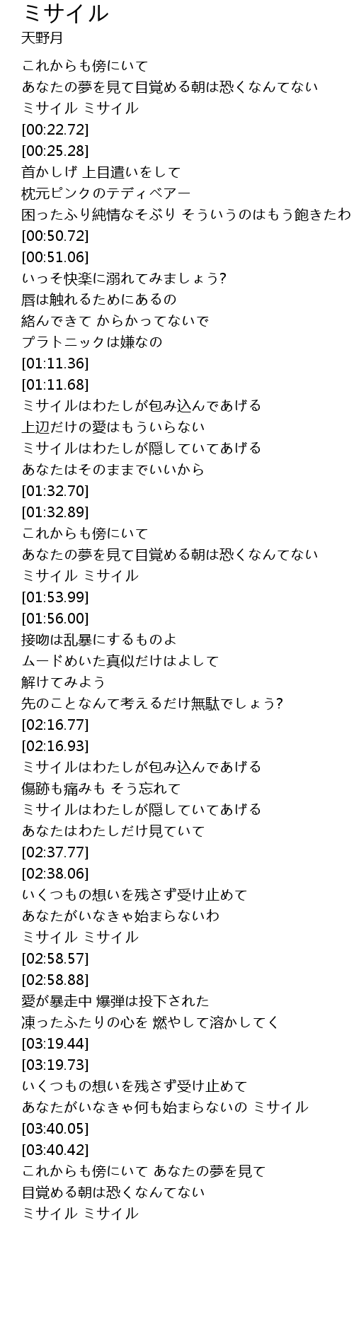 | [01:22.18] | ミサイルはわたしが隠していてあげる |