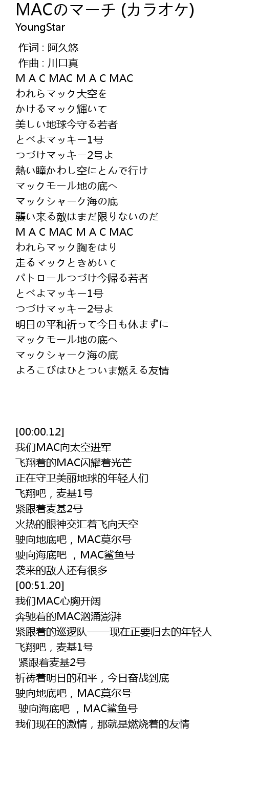 | [00:58.13] | われらマック胸をはり |