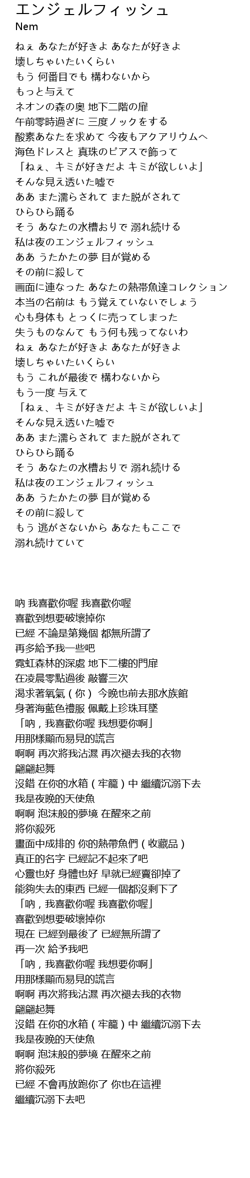 | [01:45.22] | 私は夜のエンジェルフィッシュ |