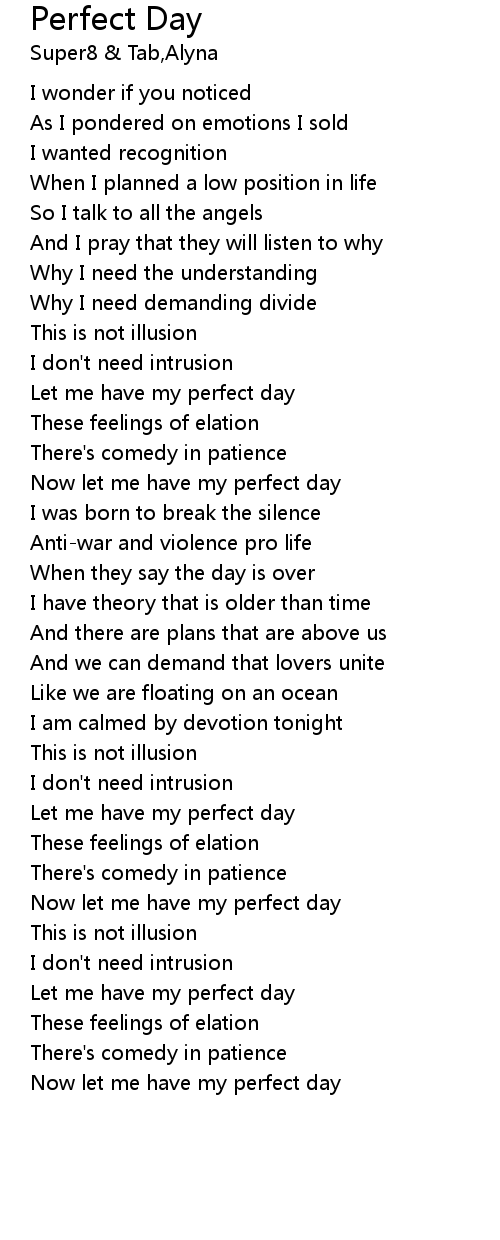 Let me have my perfect day |