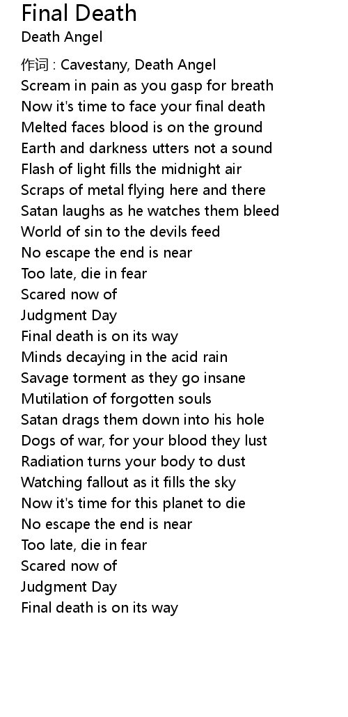 | 作词 : Cavestany, Death Angel | |