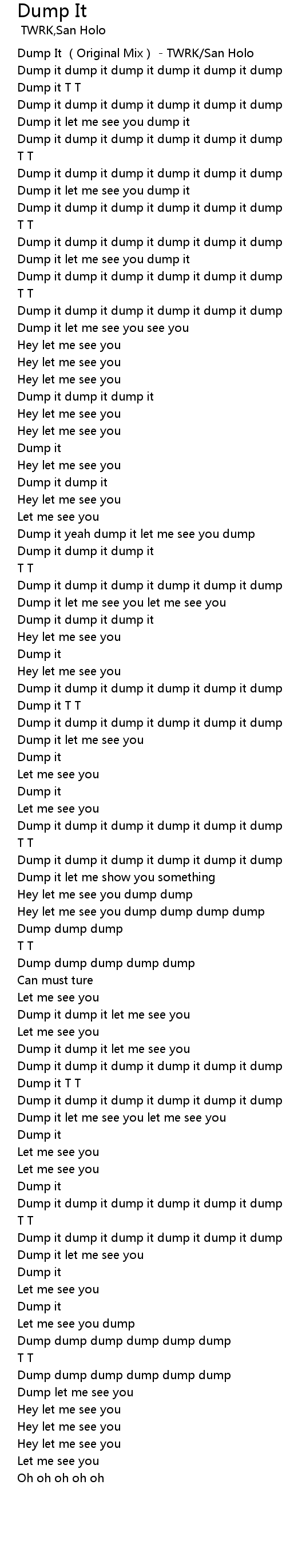 | [02:43.410] | Dump it dump it dump it dump it dump it dump it |