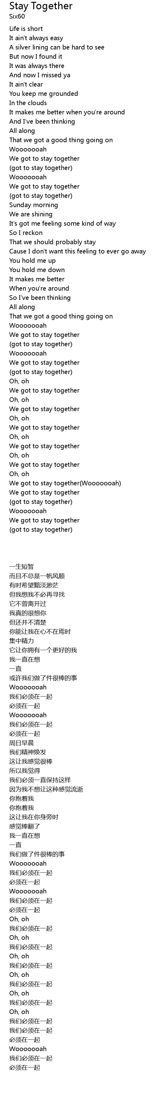 | [03:21] | We got to stay together(Wooooooah) |