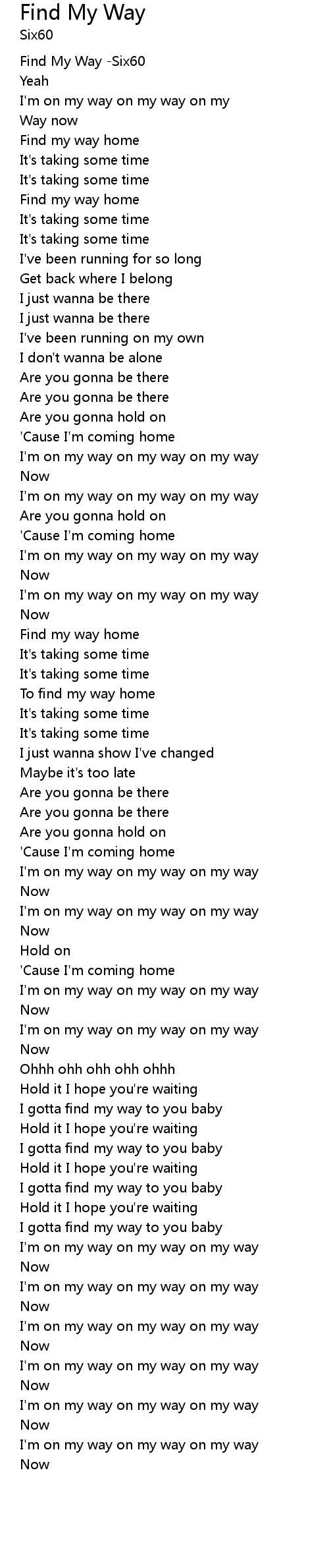 | [00:00.522] | Find My Way -Six60 |