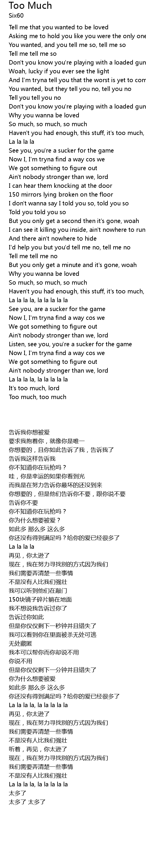 | [00:52.76] | Haven't you had enough, this stuff, it's too much, too much |