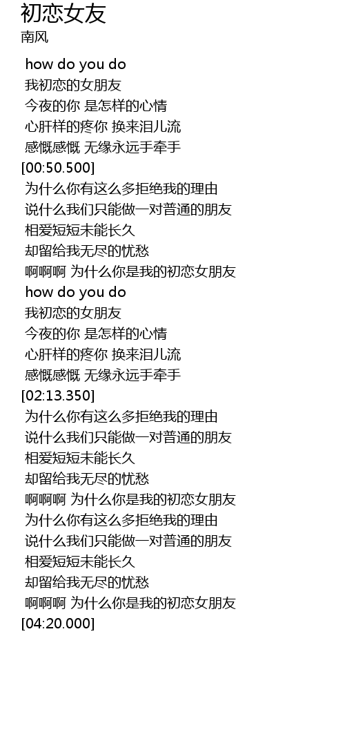 | [01:46.680] | 我初恋的女朋友 |