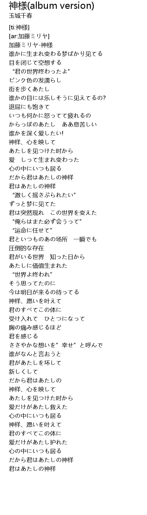 | [00:02.636] | 加藤ミリヤ-神様 |