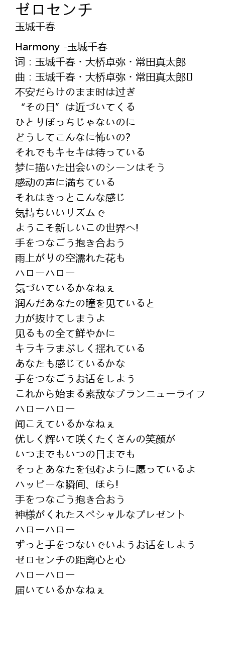 | [00:01.590] | 词:玉城千春・大桥卓弥・常田真太郎 |