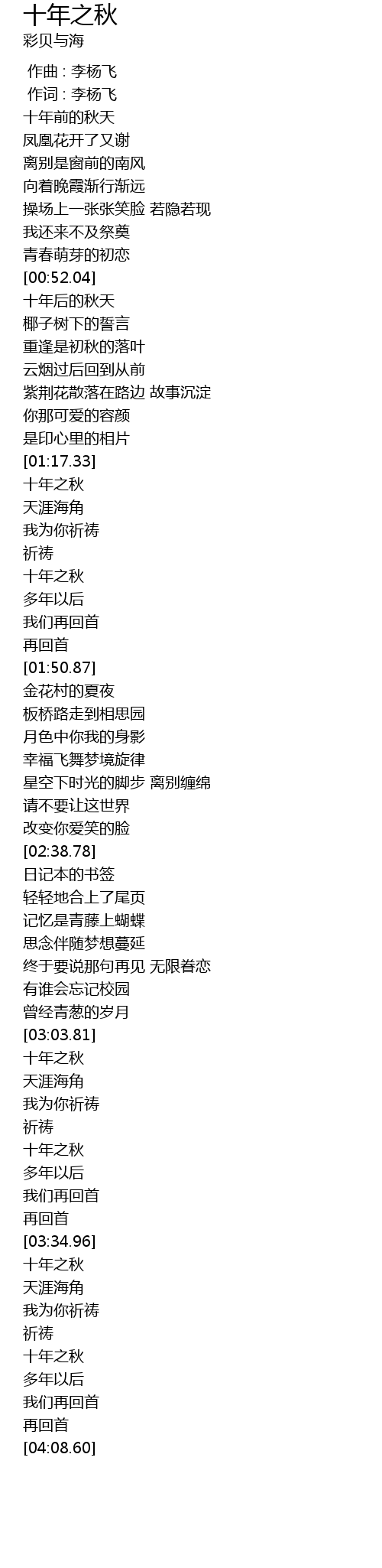 | [00:52.29] | shí nián hòu de qiū tiān |