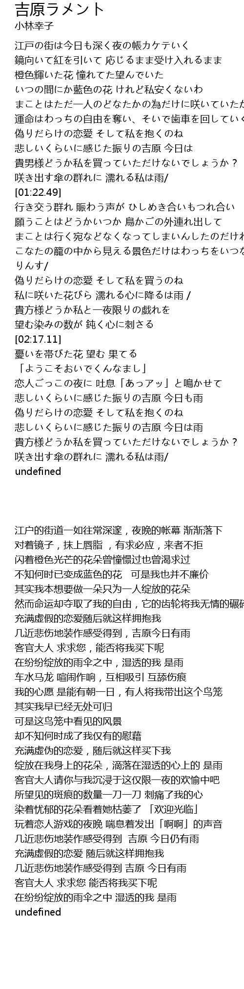 | [02:58.74] | 悲しいくらいに感じた振りの吉原 今日は雨 |