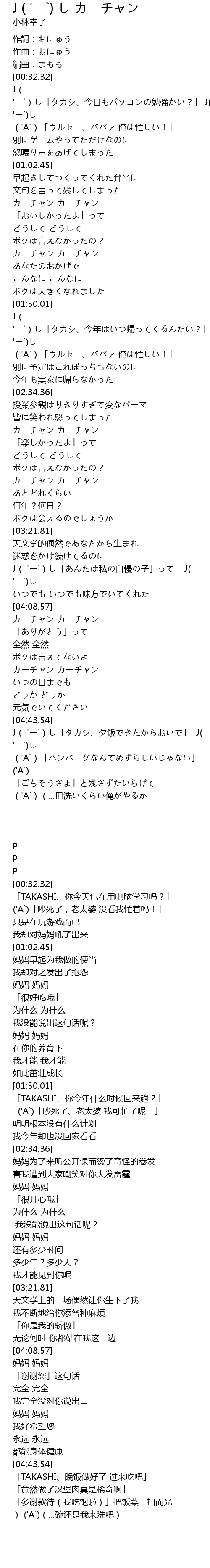 | [02:49.89] | カーチャン カーチャン |