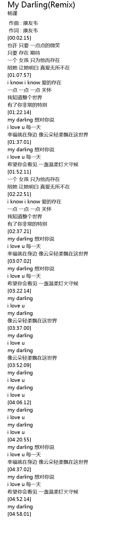 | [04:37.18] | my darling xiǎng duì nǐ shuō |