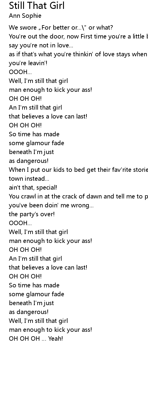 | You're out the door, now First time you're a little bored „See ya, baby?\" You say you're not in love... | |