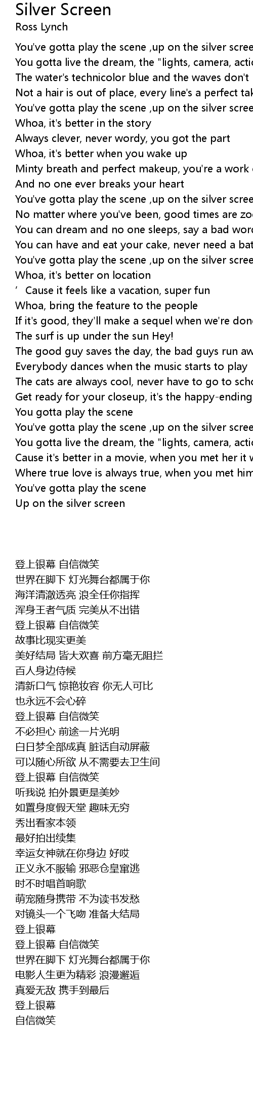 | [00:00.00] | You've gotta play the scene ,up on the silver screen |