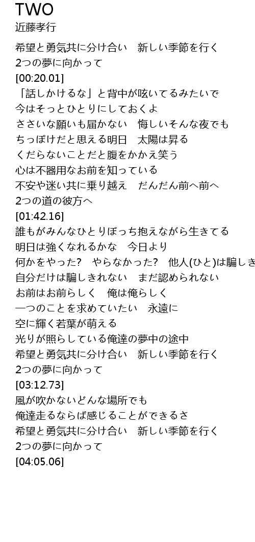 | [03:58.53] | 2つの夢に向かって |