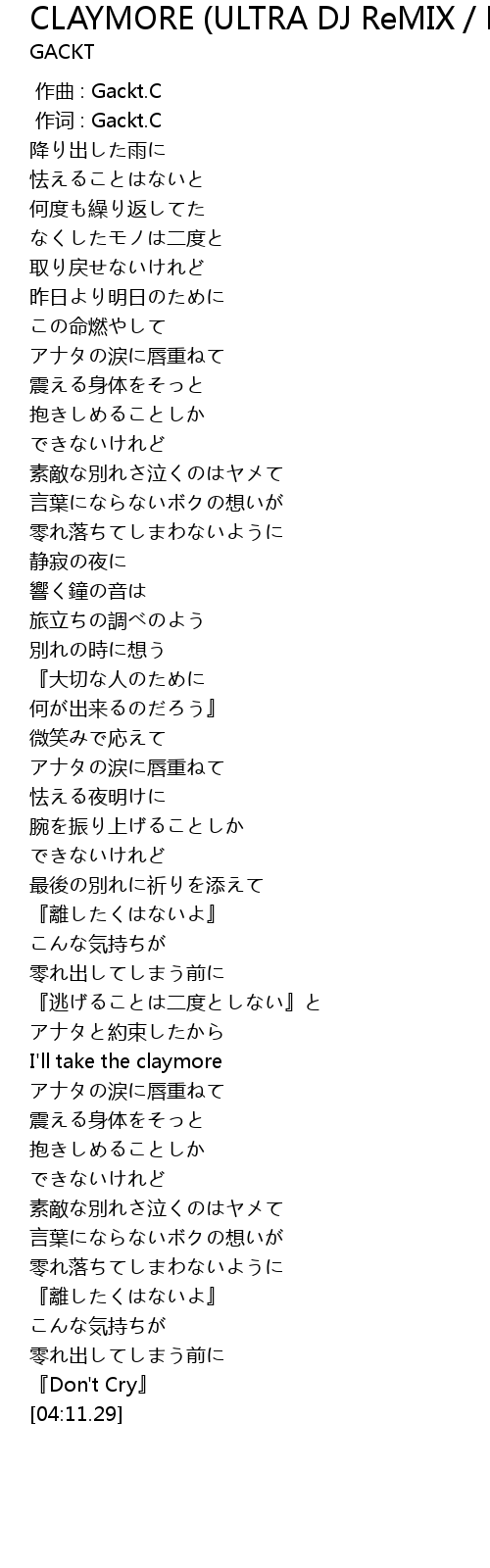 | [00:00.00] | 作曲 : Gackt.C |