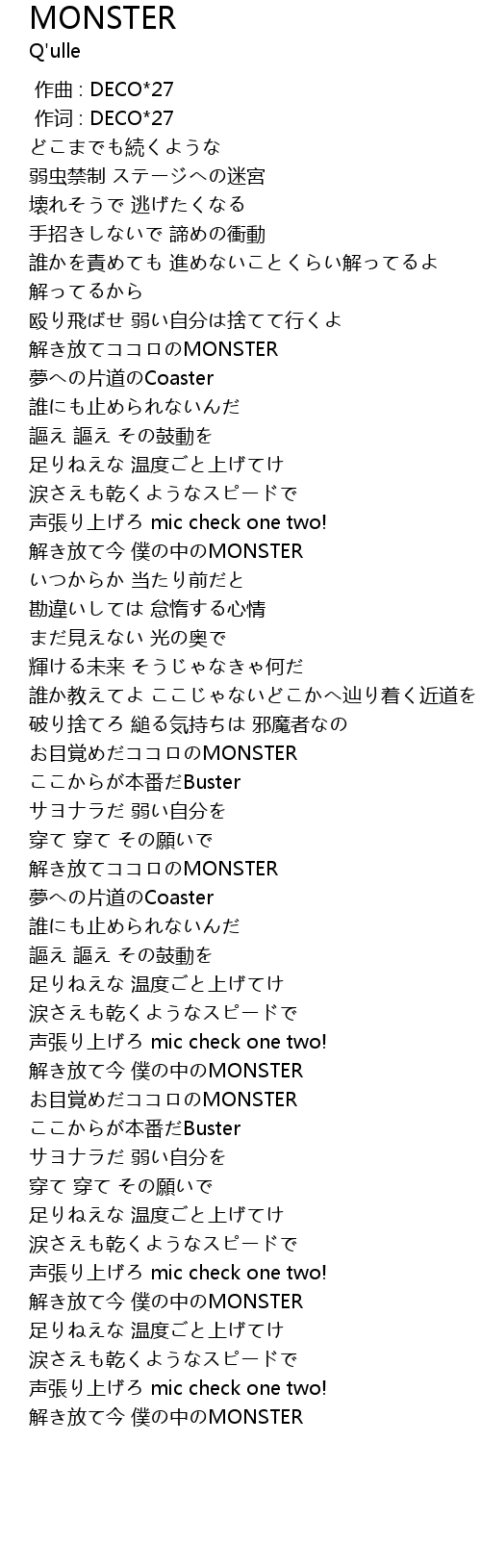 | [02:25.44] | お目覚めだココロのMONSTER |